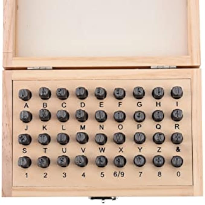 HimaPro Letter and Number Stamp Set 36pcs 40Cr Alloy Steel Metal Stamp Number and Letter Punch Set, Wooden Box (6mm 1/4")