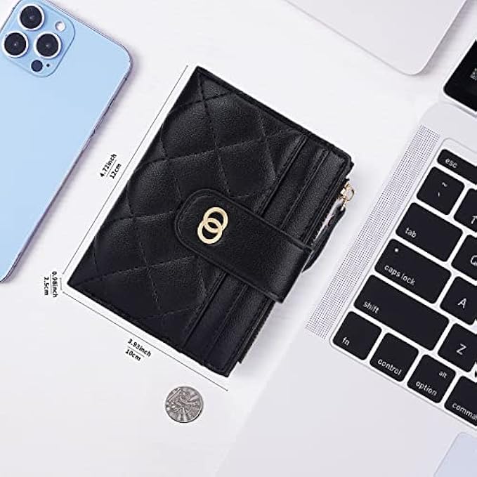 HKCLUF Small Wallets for Women,Minimalist Slim Leather Bifold Zipper Wallet Women Small Credit Card Holder Coin Purse Mini Wallet With ID Window(Black)