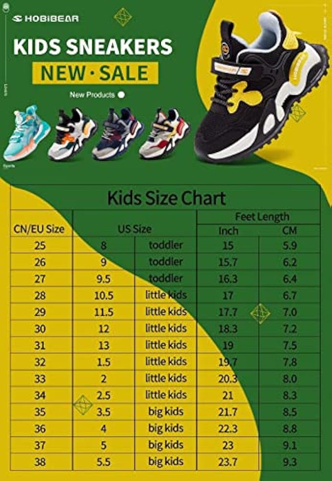 【Tips】 HOBIBEAR kids sneakers are stylish and functional, they're perfect for running, playing sports, or everyday wear. Please refer to the size chart before ordering.