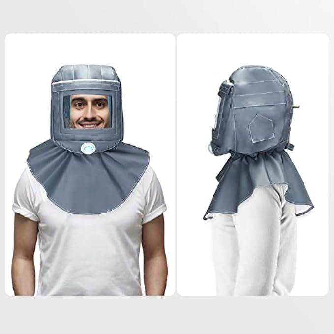 【Wider Field of Vision】The front of this hood for sandblasting is a high-definition thickened glass lens, with a curved design for a wider field of vision,and work efficiency will be also greatly improved.