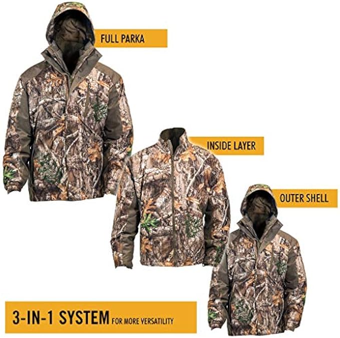 YEAR ROUND VERSATILITY: This Camo Parka features a combination of two camo jackets; an exterior waterproof shell that acts on it’s own as a rain jacket and a comfort interior jacket. Both the outer shell and liner jackets are seam sealed to prevent any leak from weather.