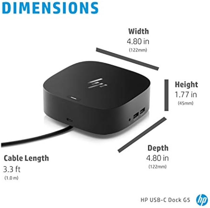 HP USB-C Dock G5-8 in 1 Adapter for Both USB-C and Thunderbolt-Enabled Laptops, PCs, & Notebooks - Single Cable for Charging, Networking, or Data Transfers - Great for Secure & Remote Management