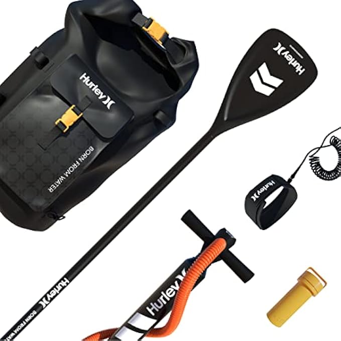 Hurley Stand Up Paddle Board Kits | Includes Waterproof Backpack, Dual Action Air Pump, Adjustable Paddle, Coiled Leash, Fin & Maintenance Kit | Multiple Designs Available