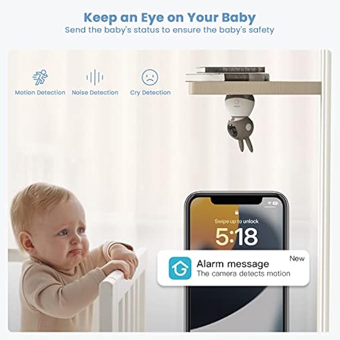 ieGeek Video Baby Monitor 2K WiFi with Phone App, Baby Monitor with Camera and Audio, 5" Display, Night Vision, Motion & Cry Detection, 2 Way Audio Talk, Suitable for Monitoring Baby, Elderly, Pets