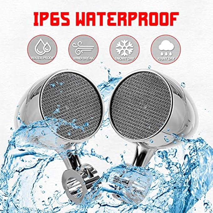 ▶IP65 Waterproof: Excellent quality and high water resistance rating means the motorcycle speakers are protected against rain, splashing, fog and other moisture, allowing you to play your favorite music even in the rain.