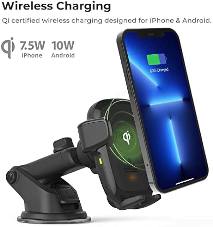 iOttie Auto Sense Qi Wireless Car Charger - Automatic Clamping Dashboard Phone Mount with Wireless Charging for Google Pixel, iPhone, Samsung Galaxy, Huawei, LG, and other Smartphones