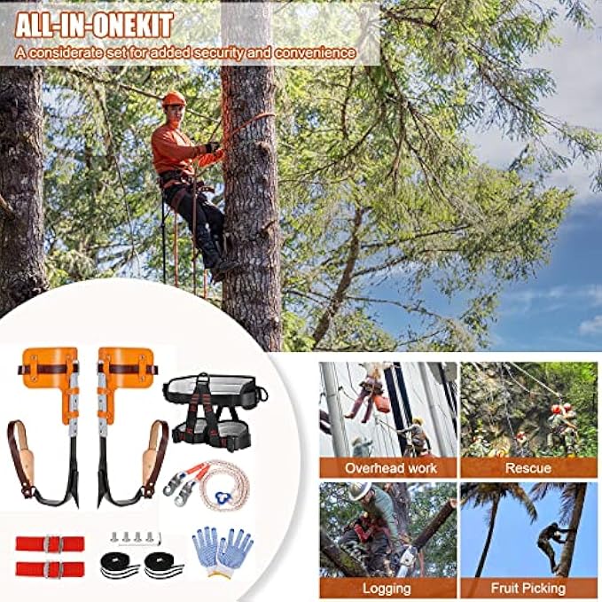 ??【Multiple Applications】 Tree climbing spike kit is ideal for high altitude logging, jungle survival, fruit picking, indoor climbing, take-out, fire rescue, higher level work, etc. It is recommended to practice tree climbing spikes at heights below 1m now, and then climb higher after you become proficient in using them.
