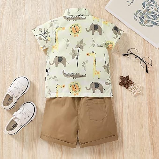 ?Feature: fashion and cute animal print, Button-Down design, turn down collar, short sleeve blouse, solid shorts,your cool boy summer standard.