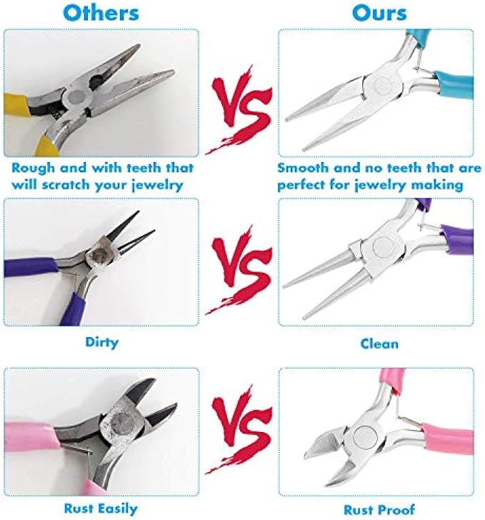 【ღ PLEASE NOTE】Jewelry making tools are oiled to prevent rust. Don't worry if the jewelry pliers tips you received have some oil on them making them look dirty. Wipe them with a cloth before use and coat them with oil before storage, this will help the pliers stay rust-proof