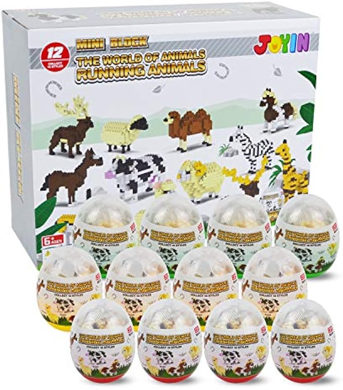 SUPER VALUE COMPREHENSIVE SET. Pre-filled Easter Eggs includes 12 egg pieces that come with Running Animal Building Blocks: Elk, camel, giraffe, alpaca, sheep, zebra, horse, cow, donkey, etc. A perfect surprise during Easter!
