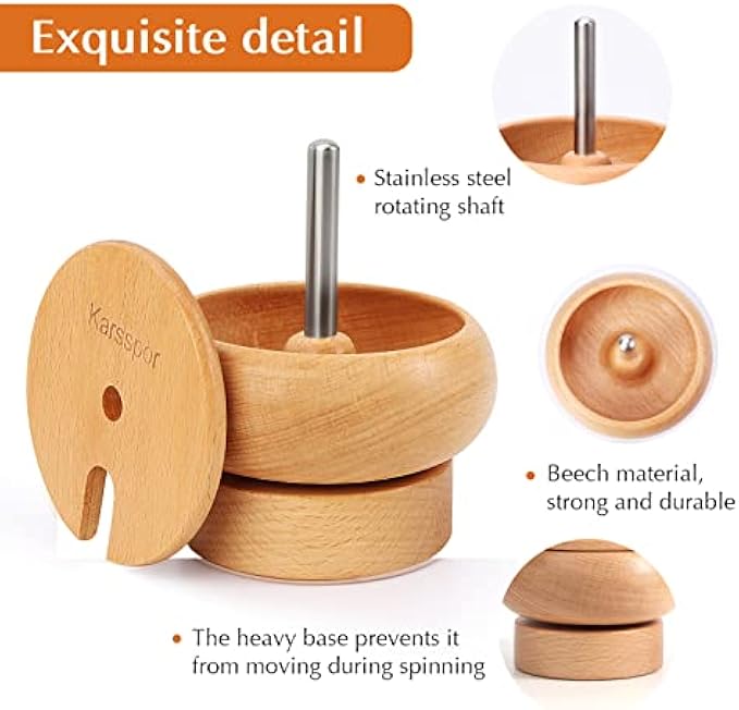 Beaded Spinner for Jewelry Making: Wooden spinner 3.5H x 9W cm, made of high-quality beech material, polished and smooth surface, stainless steel shaft can rotate smoothly, no obstacles when spinning. Give you a better beading experience