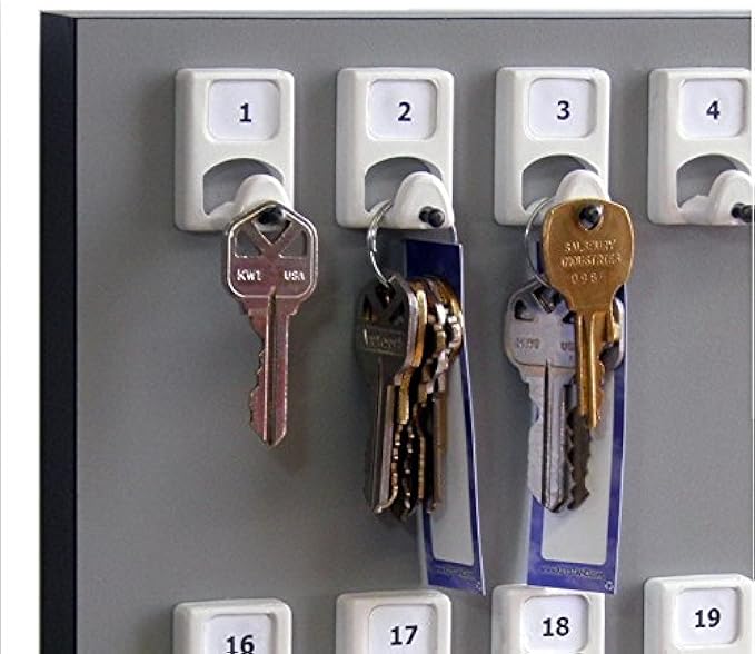 Fully assembled keystand with 50 numbered hooks, hung on single key, key set or both on each hook (labels with other numbers or blank are available for free; please send your requested labels with your mailing address).