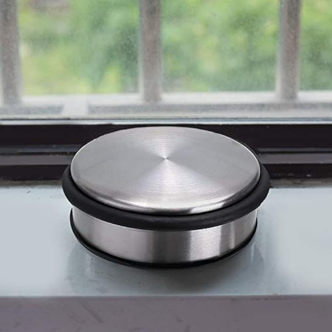 KINJOEK Heavy Duty No Drill Door Stopper, Stainless Steel Door Stop, Surrounded with Protective Rubber Bands Anti-Slip Door Wedge for Office, Home, Garage, Laundry Door