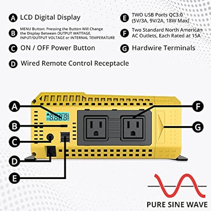 Hassle-Free Installation - We heard your car troubles so we're introducing our version of an all-inclusive 12 volt rv inverter! Krieger 1500 watt pure sine wave inverter installation kit comes with wired LCD remote control, ANL fuse kit and 3 Ft battery cables included for fast, simple and flawless installation.