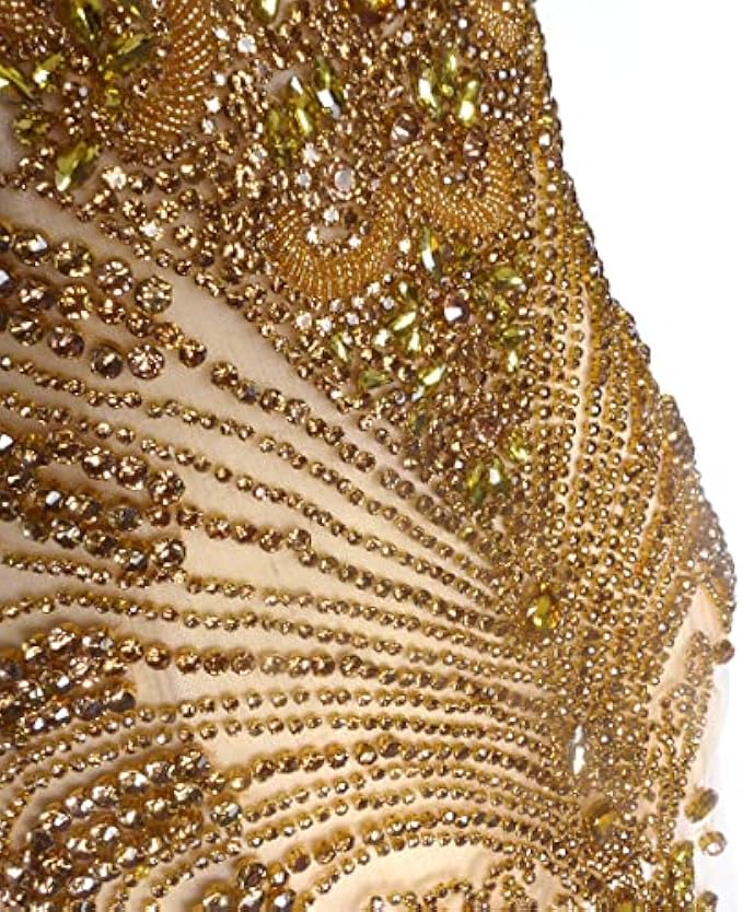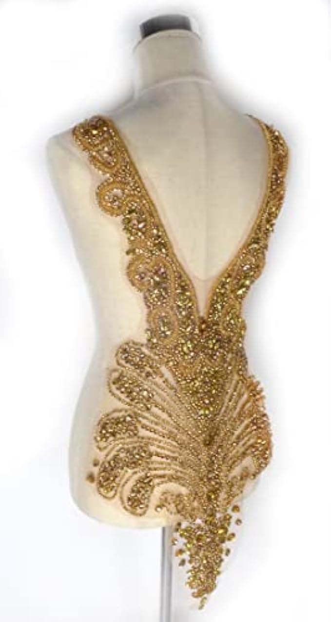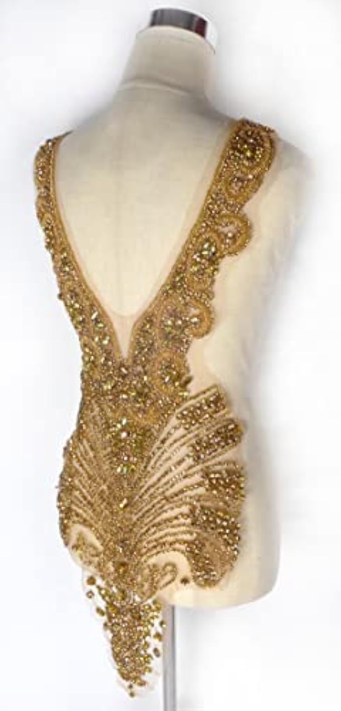Material:This rhinestones bodice applique made in Glass beads,glass rhinestons,the botton of the rhinestones is steel,so the color can keep long time.polyester tulle.Hand-made beading.It is hard work,about 3 days to make 1 piece, each pieces about 1.5lb.