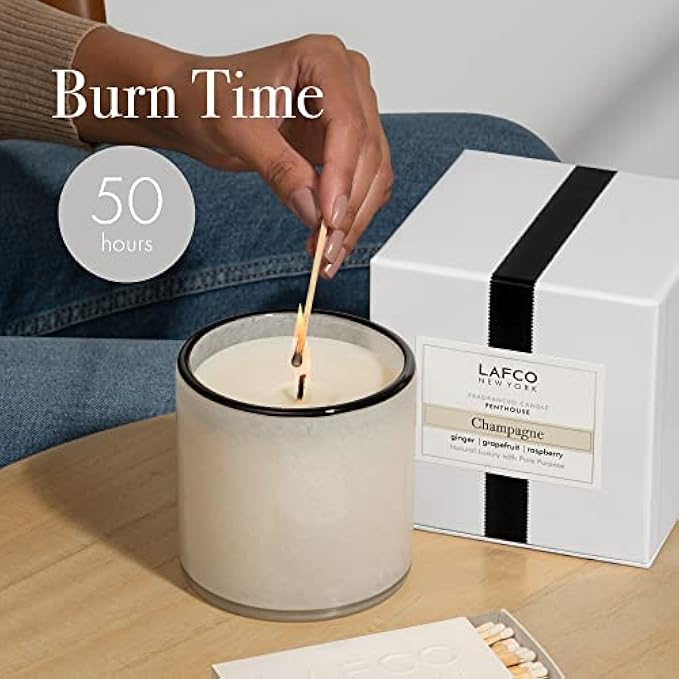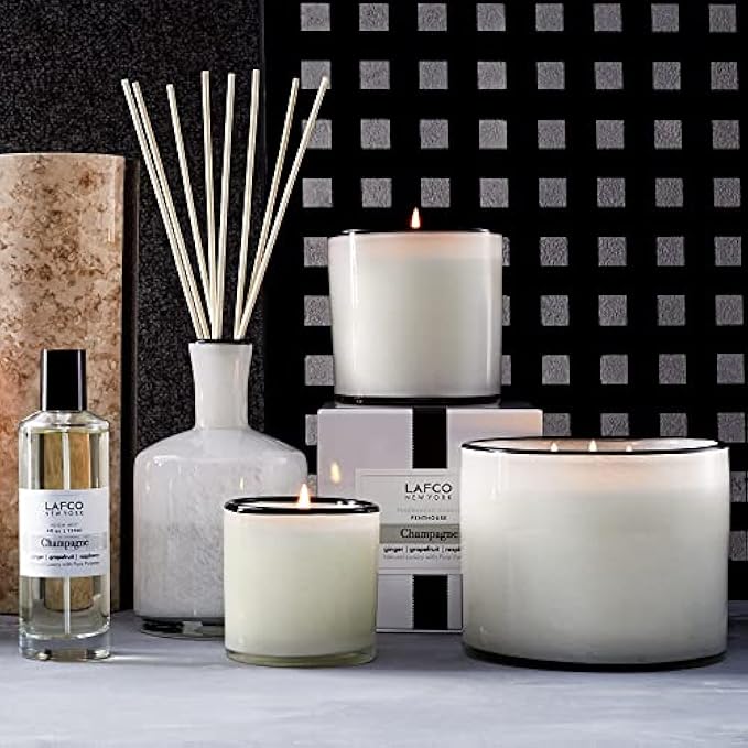 LAFCO New York Classic Candle, Champagne - 6.5 oz - 50-Hour Burn Time - Reusable, Hand Blown Glass Vessel - Made in The USA