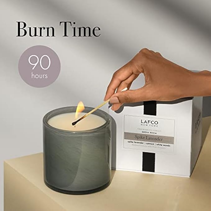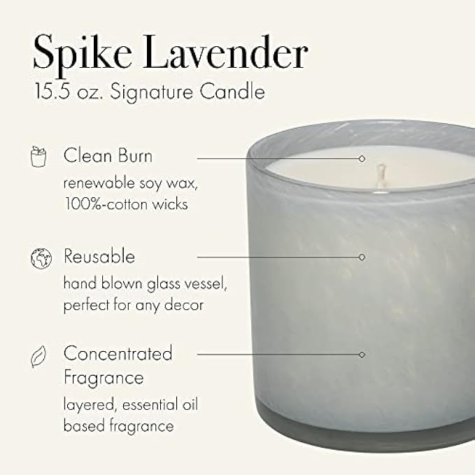 LAFCO New York Signature Candle, Spike Lavender - 15.5 oz - 90-Hour Burn Time - Reusable, Hand Blown Glass Vessel - Made in The USA
