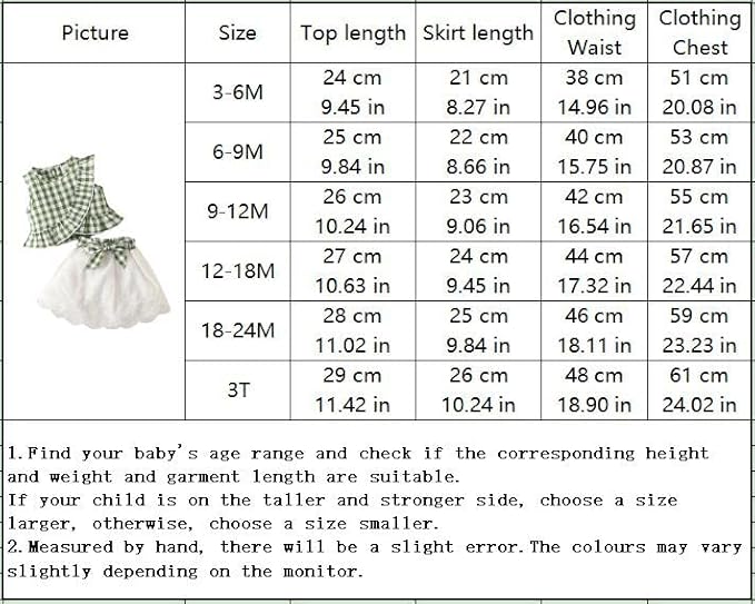 ➤【Design】:This baby girl skirt set includes a sleeveless top and a cute skirt. The top comes with ruffles and classic plaid elements, and the skirt with bow at the waist. This baby girl clothes set of fresh colors, summer must-have.
