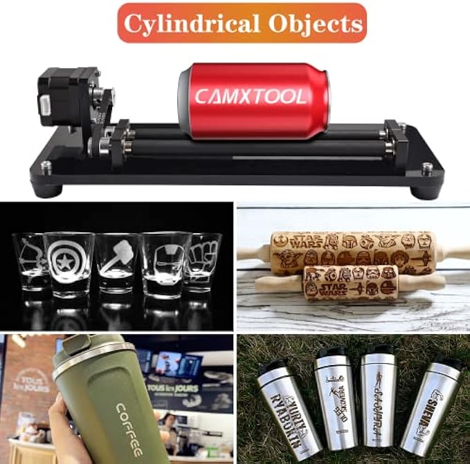 【Successfully Engraving Round Objects】The laser rotating roller can engrave 360 degree engraving on cylindrical or round objects, such as coke cans, round tubes, cups, bottles, pipes, bowls, drums and tubes, glass and other curved and cylindrical objects . The laser engraved spinner is made of acrylic sheet and metal material, sturdy and durable. It is small in size and easy to carry.