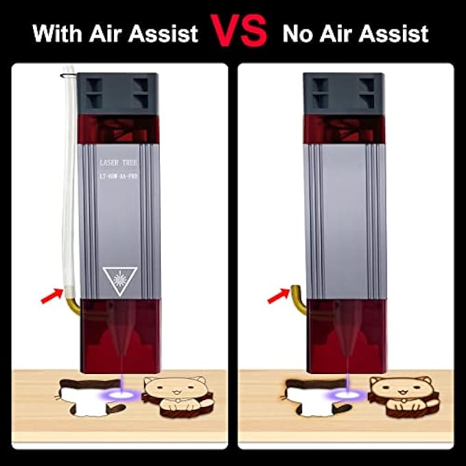 【Upgraded Laser Module】 a. The laser module is upgraded to a curved air metal nozzle with a diameter of 6 mm, which better reduces air resistance. Cutting faster, deeper, smooth cutting surface, less burning marks; b. The magnetic laser shield on the laser module can filter 97% of ultraviolet rays to protect your eyes and people around; c. The top of the laser module adds Fan protection and air pipe bracket 2 in 1 stainless steel parts