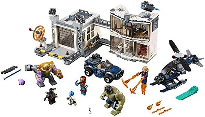 In addition to the toy building, this set comes with toy vehicles and 4 Marvel minifigures including Iron Man, Captain Marvel, Nebula and an Outrider, Plus, Hulk and Thanos big figures and an Ant-Man microfigure for hours of pretend play