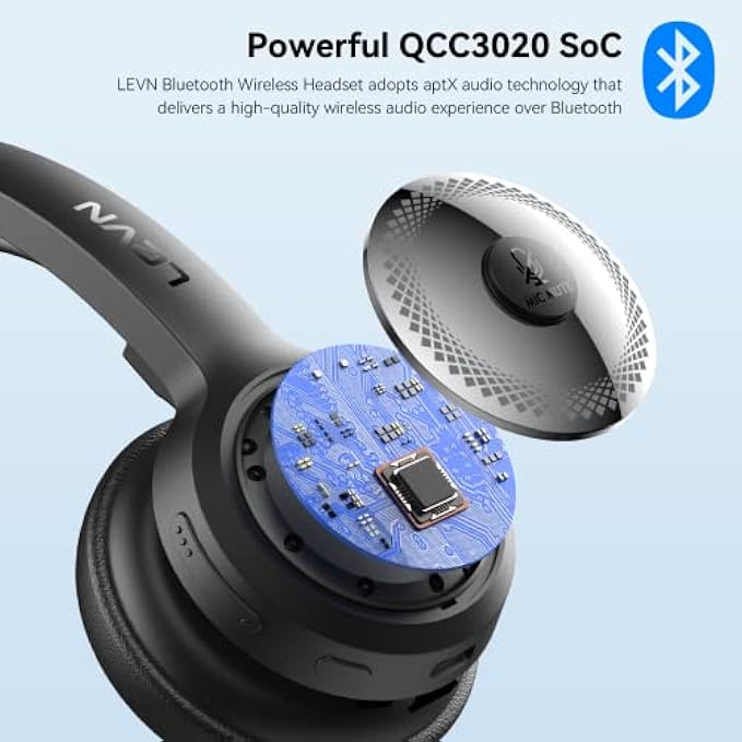 Two Connectivity Methods & Wide Compatibility: LEVN on ear bluetooth headphone uses Bluetooth 5.0 technology to support the connection of computers, cell phones, telephone, and other Bluetooth devices. For devices without Bluetooth function, you can use the USB dongle that comes with the device to connect. It will be more stable and has no transmission delay to connect this PC headset to the computer via the USB connection method