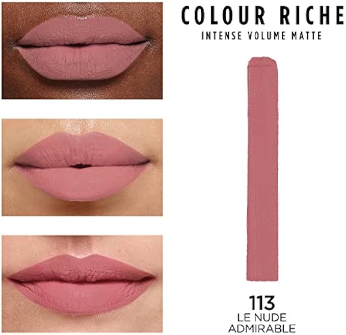 L'Oreal Paris Colour Riche Intense Volume Matte Lipstick, Lip Color Infused with Hyaluronic Acid for up to 16hr All Day Comfort, Le Nude Admirable, 0.06 Oz