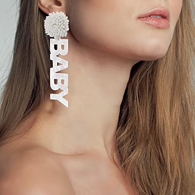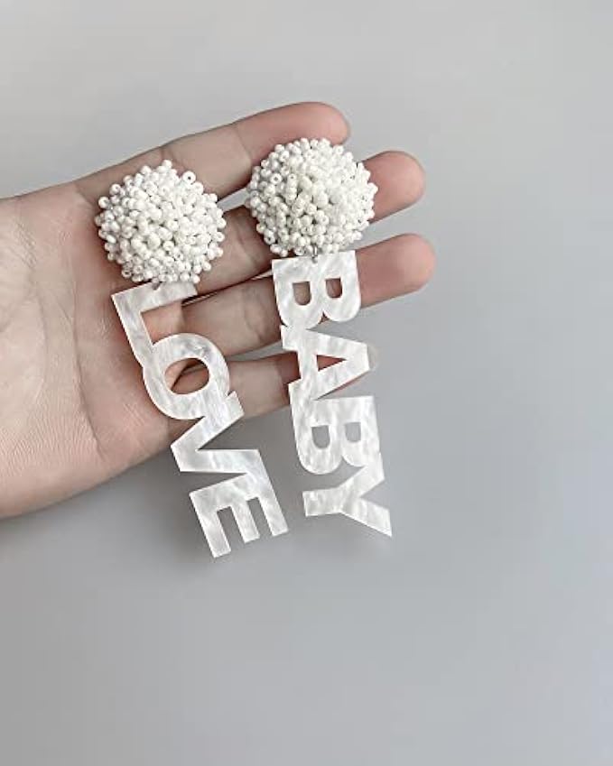 LOVE BABY Sign Earrings for Gender Reveal, Pregnancy Announcement, Baby Shower Party decorations – by JTRF (White)