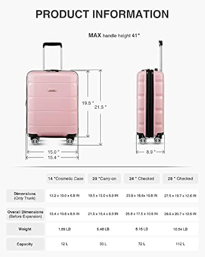 HIGH-END MATERIALS - 4 piece luggage sets is made using superior grade, highly durable 100% eco-friendly polypropylene with ULTRA-LIGHT, ULTRA-STRONG shells withstand the rigors of modern travel.