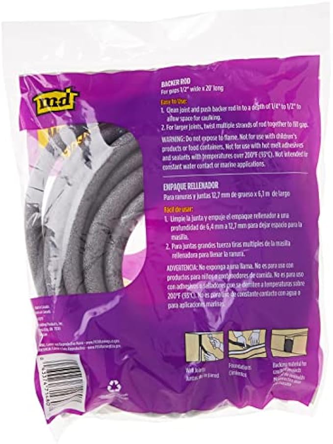 M-D Building Products 71480 1/2-Inch by 20-Feet Backer Rod, Gray