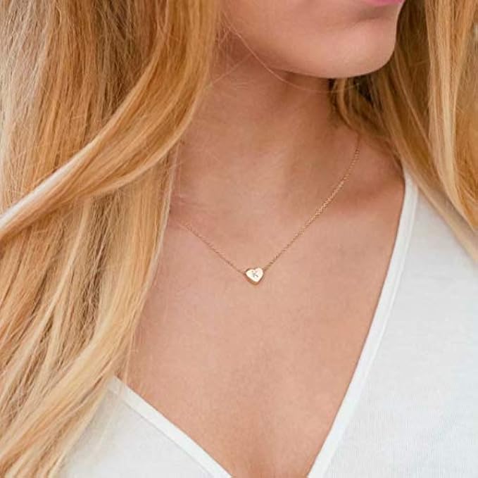 MATERIAL: 14K gold plated over premium brass, initial heart necklace never get tarnished or change color. Lead free, nickel free and hypoallergenic tiny initial necklace is no irritation for sensitive skin.