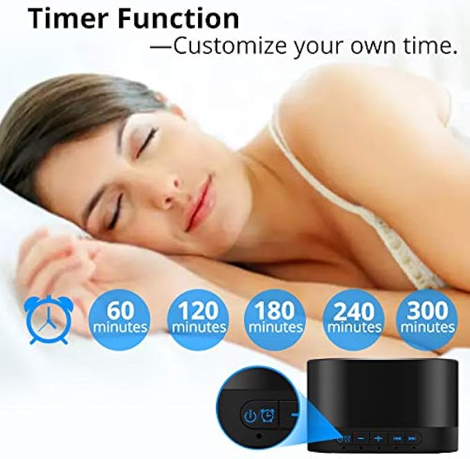 ❤Function & Safety:Memory function automatically restores your previous volume, sound and time,it is powered by AC or USB.The machine is approved by FCC, CE and RoHS,don't need to worry about accidents.