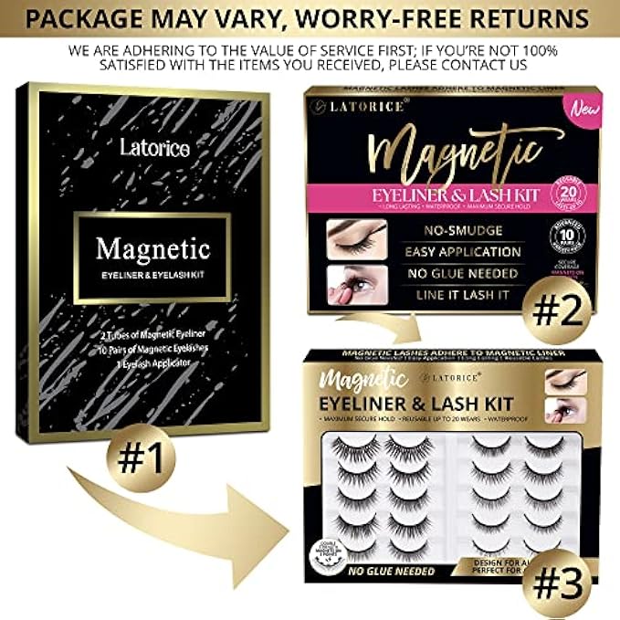 Premium Quality Magnetic Lashes - Latorice magnetic lashes are made out of 100% high-quality synthetic fibers to complement any look, day or night. They are tested to work on different eye shapes with five magnets to keep them adhere to the included magnetic eyeliner. They are trimmable if needed.