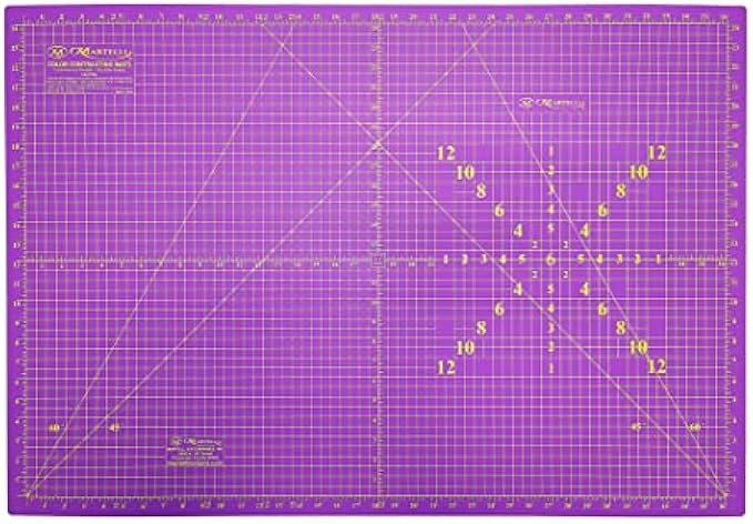 The mat is double-sided for the contrasting of colors. One side is yellow (for darker materials) and one side is purple (for lighter materials).