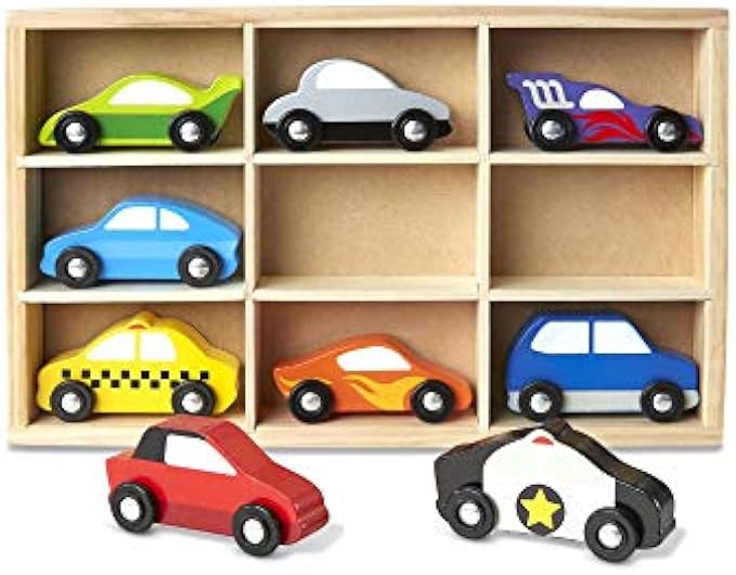 Melissa & Doug Wooden Cars Vehicle Set in Wooden Tray - Toys For Toddlers And Kids Ages 3+