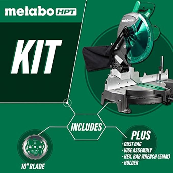 Metabo HPT 10-Inch Miter Saw | Single Bevel | Compound | 15-Amp Motor | C10FCGS