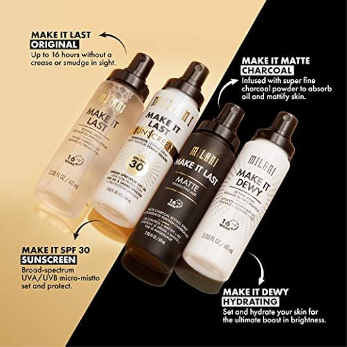 PRIME + CORRECT + SET: Make It Last Prime + Correct + Set Setting Spray preps your face, reduces the appearance of imperfections and then locks in for the long haul. You can enjoy up to 16 hours without a crease or smudge in sight. Spray before or after makeup application, or wear it alone for a captivating natural finish.