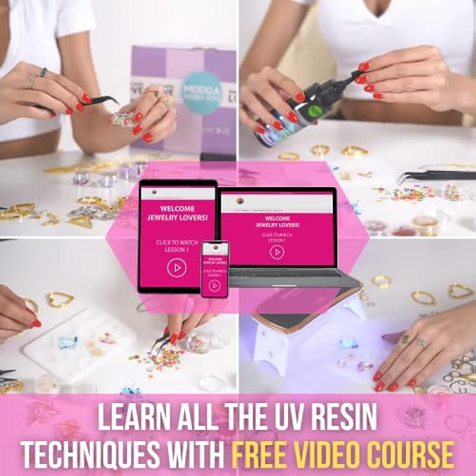 - With this kit, you have access to UV Resin video courses that teach you about UV Resin step by step. With all the tools and supplies, the Modda Deluxe UV Resin Kit will give you gorgeous and fun results that are a joy to make and a joy to wear.