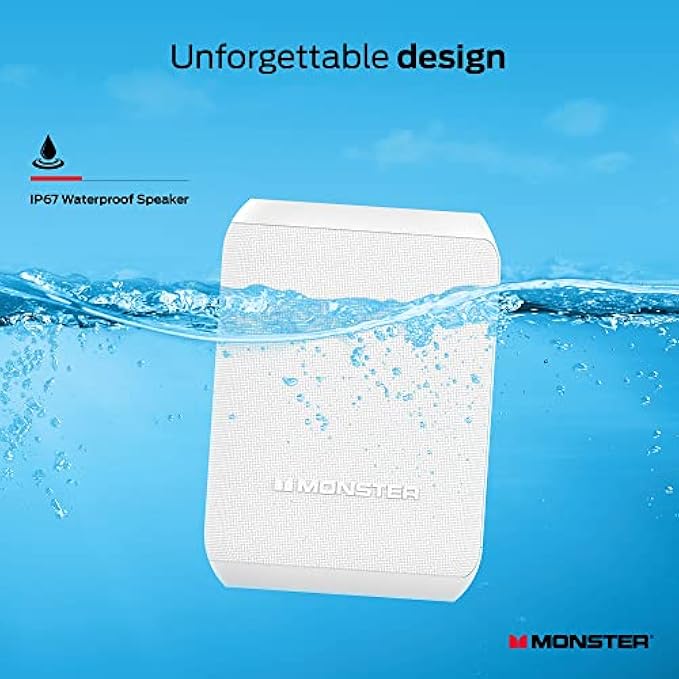 Monster DNA One Portable Bluetooth Speaker, Wireless Mini Loud Portable Speaker with 360 Omnidirectional Bass Sound, IP67 Waterproof- for Travel, Indoor and Outdoor Party Events, and Home Use (White)