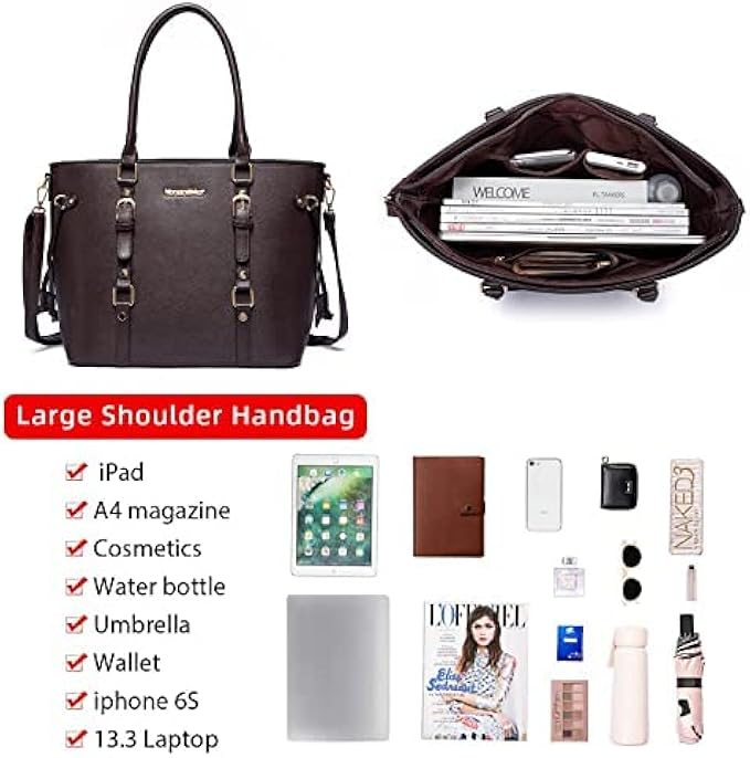 [Superb Material] This womens tote purse made of vegan leather. The stitching is well made as smoothly to touch. The linging of this tote bag purse was used the supreme cloth. There's no chemical left in this women's purse. 3pcs in 1 set, it is convenient for you.