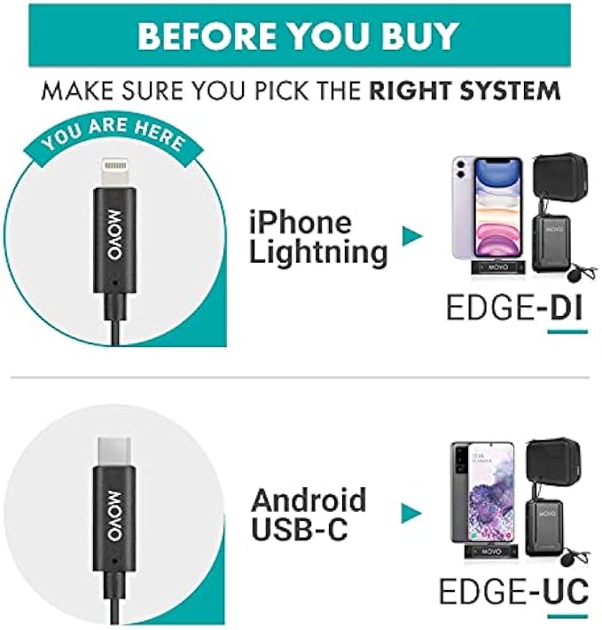 Movo Edge-DI Wireless Lavalier for iPhone - Perfect Compact Lav Mic for Smartphone Gimbal Stabilizer - Great for Vlogging, Filming, Teachers, and More - Compatible with DJI Osmo OM 4, 5
