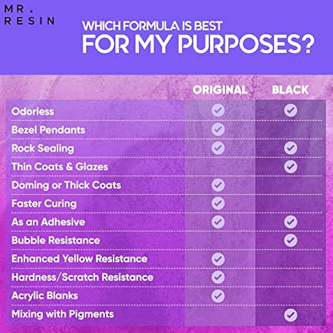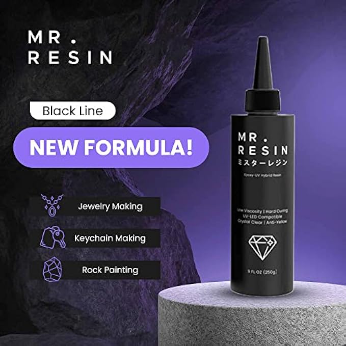 MR. RESIN BLACK LINE NEW FORMULA! - Extra Anti-Yellowing & Low Odor! UV Resin is used in jewelry and key chain making, rock painting and more. Includes silicone tool, pad and curing light (250g set)