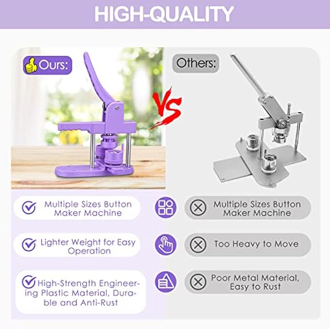 【High Quality and Durable】Made of high quality plastic, this pin maker machine is sturdy, lightweight and durable. Different from metal button badge machine, it is portable and is anti-rust with better mechanical properties. Perfect for making small gifts like pin badge, opener, keychain, etcs.