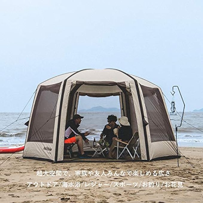 Naturehike Airpole Bower - 8-10P Screen House Room Beach Canopy Tent Hexagonal Inflatable Large Shelter for Camping, Hiking, Backpacking, Fishing (Golden)