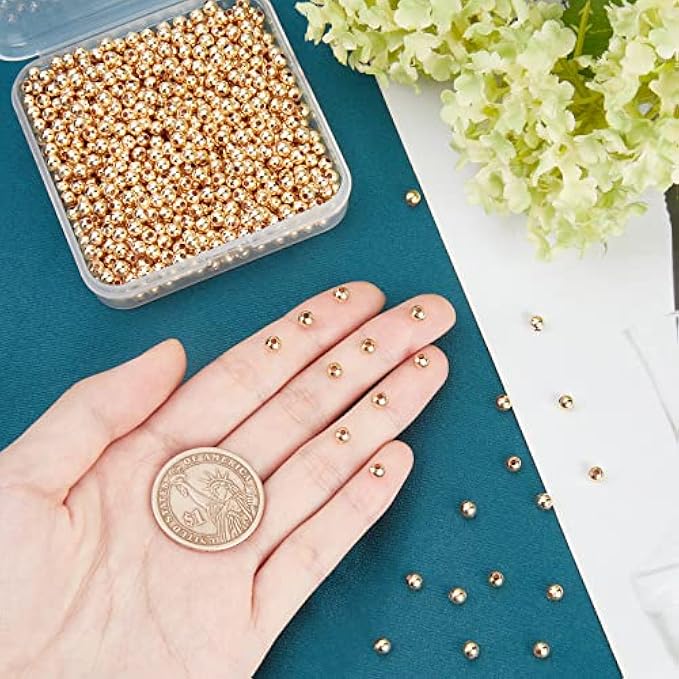 PACKAGE INCLUDES--About 1000pcs round 18K gold pierced loose beads in total, great DIY accessories for making jewelry. Dimensions: Bead diameter approx. 4mm, Hole: 1mm.