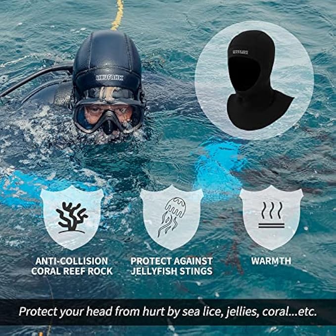 ★【COMFORTABLE FIT】Diving hood is made of 5/3mm premium neoprene which can lock body temperature and prevent heat dissipation in cold water. Neoprene hood is providing you a flexible and comfortable wear, and giving you a unforgetable diving experience.