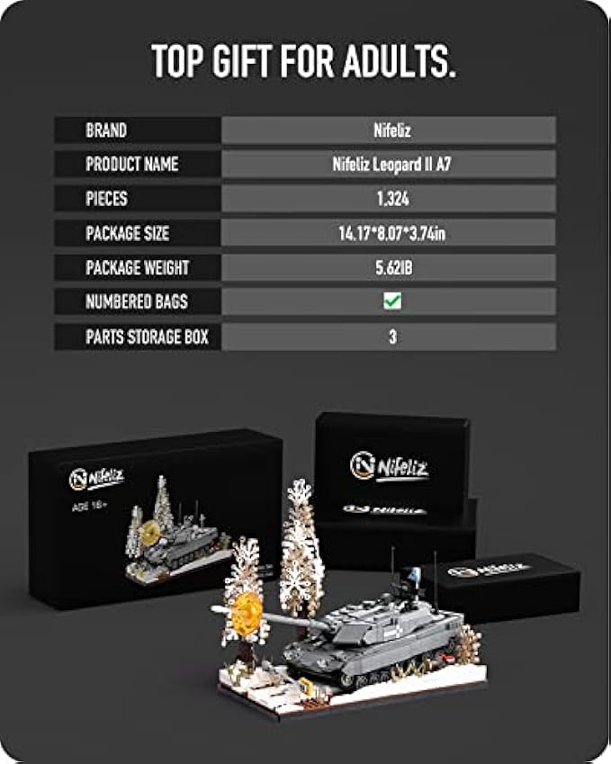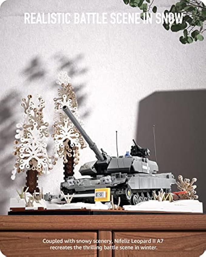 Display your own military tank - Consisting of an awesome military tank and beautiful snowy landscape, this Nifeliz building set will enchant people at first glance. Nifeliz Leopard II A7 is a perfect addition to your decorations and is ideal for displaying in offices, studies and more. Plus, as a definite bonus for military model enthusiasts, this WW2 model tank toy can be displayed alongside other military model toys such as trucks, fighter planes, etc.