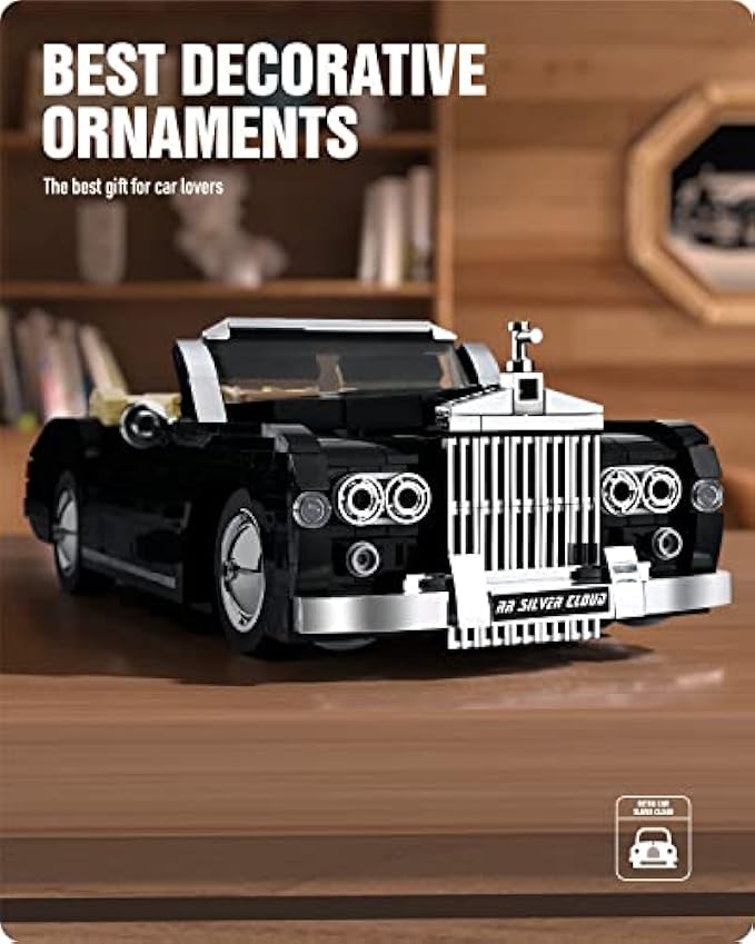 Nifeliz Retro car Silver Cloud MOC Building Blocks and Construction Toy, Adult Collectible Model Cars Set to Build, 1:14 Scale Sports Car Model (1096 Pcs