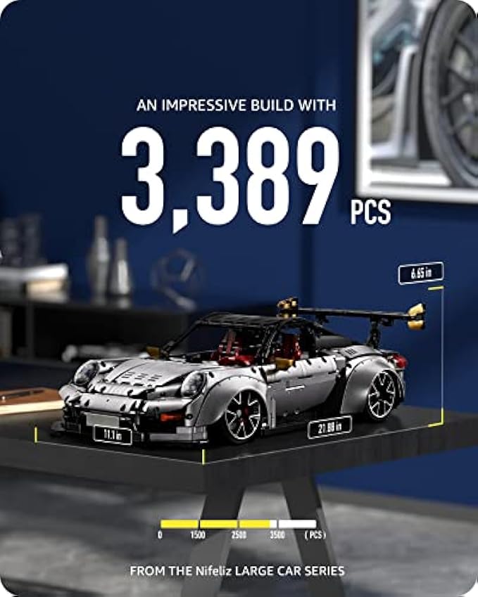 Build your own sports car - This 1:8 scale Nifeliz sports car 977 model is an exact replica, offering you an immersive building experience. For most boys and car enthusiasts, this life-like Nifeliz 977 GTZ RS Sports Car is definitely a bonus. This authentic model car allows them to further explore the renowned luxury car while building. As a challenging building project from the big car collection, this Nifeliz set with 3389 parts fits for collaborative assembly.
