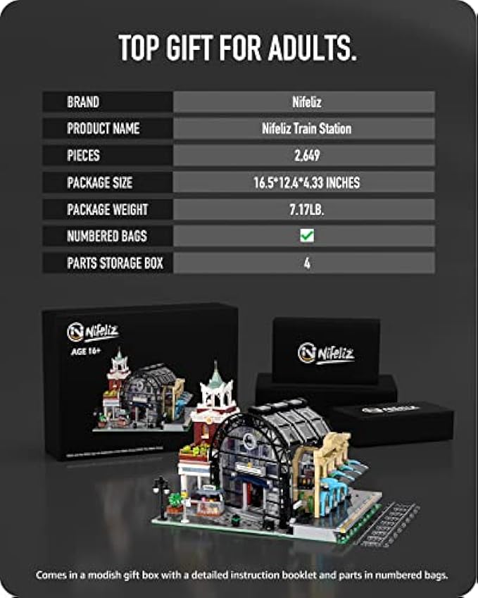 Chic display model - Add a chic ornament to your home or office for a trendy atmosphere. This creative train station building model set is designed in an orderly way with several areas. And the finished display set for adults features a solid structure, easy to move. In addition, this Nifeliz railway station building kit in medium size can be displayed in plenty of places, perfect with the other model houses.